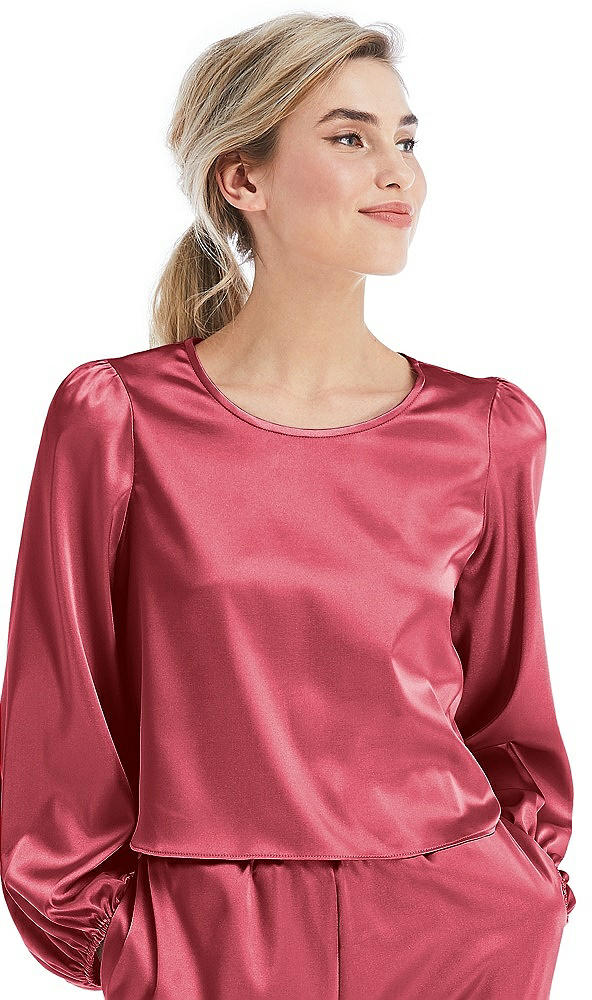 Satin Pullover Puff Sleeve Top - Parker in Nectar
