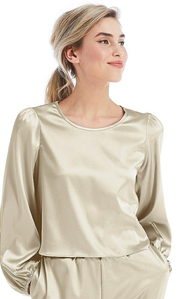 Satin Pullover Puff Sleeve Top - Parker in Champagne
