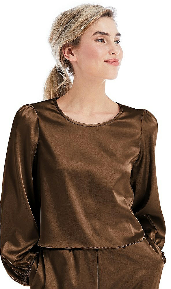 Satin Pullover Puff Sleeve Top - Parker in Latte