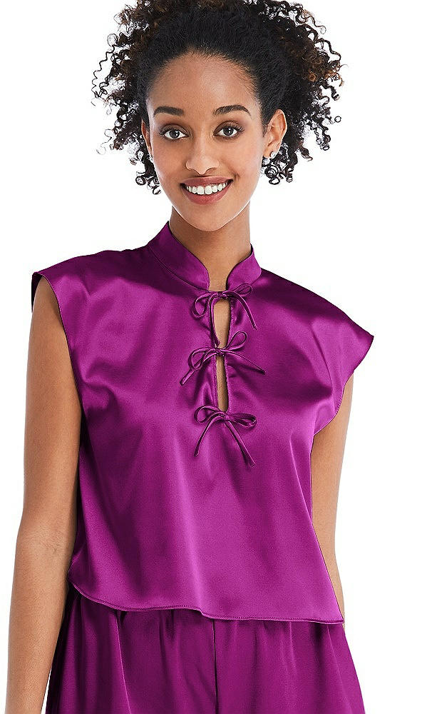 Satin Stand Collar Tie-Front Pullover Top - Remi in Persian Plum