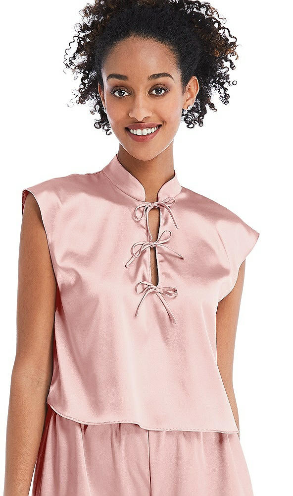Satin Stand Collar Tie-Front Pullover Top - Remi in Rose