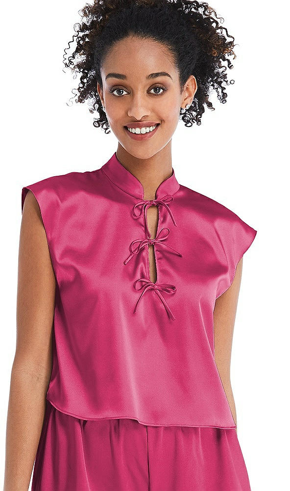 Satin Stand Collar Tie-Front Pullover Top - Remi in Shocking