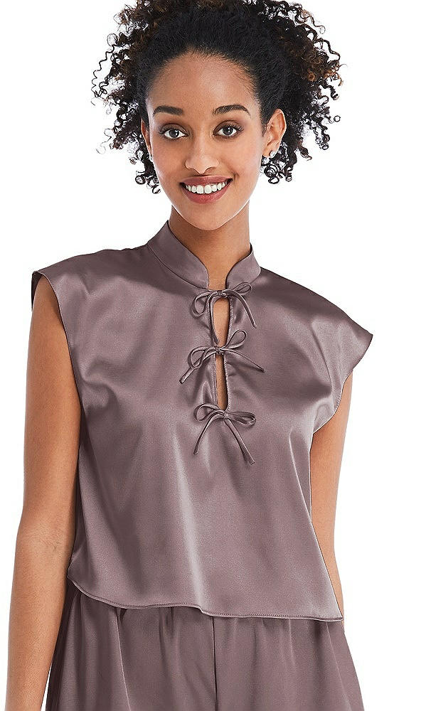 Satin Stand Collar Tie-Front Pullover Top - Remi in French Truffle
