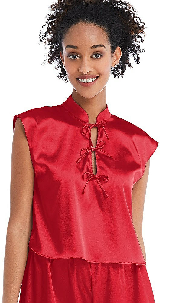 Satin Stand Collar Tie-Front Pullover Top - Remi in Parisian Red