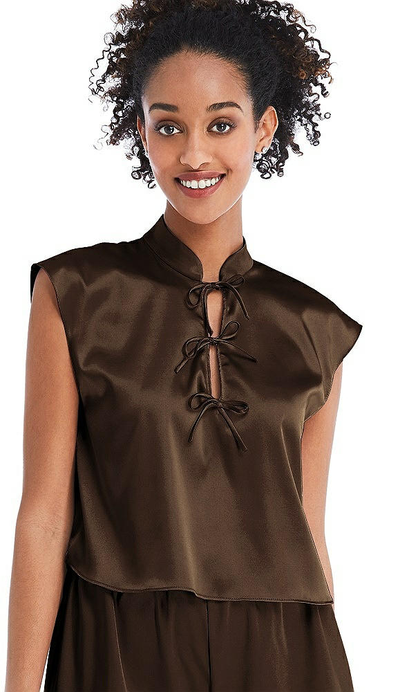 Satin Stand Collar Tie-Front Pullover Top - Remi in Espresso