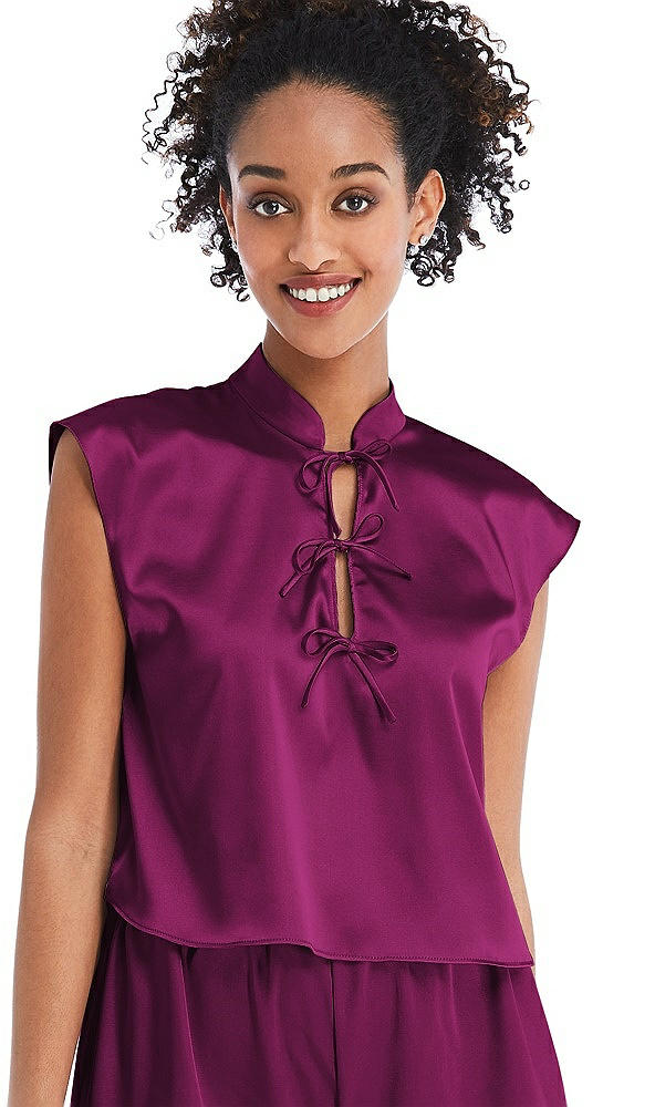 Satin Stand Collar Tie-Front Pullover Top - Remi in Merlot