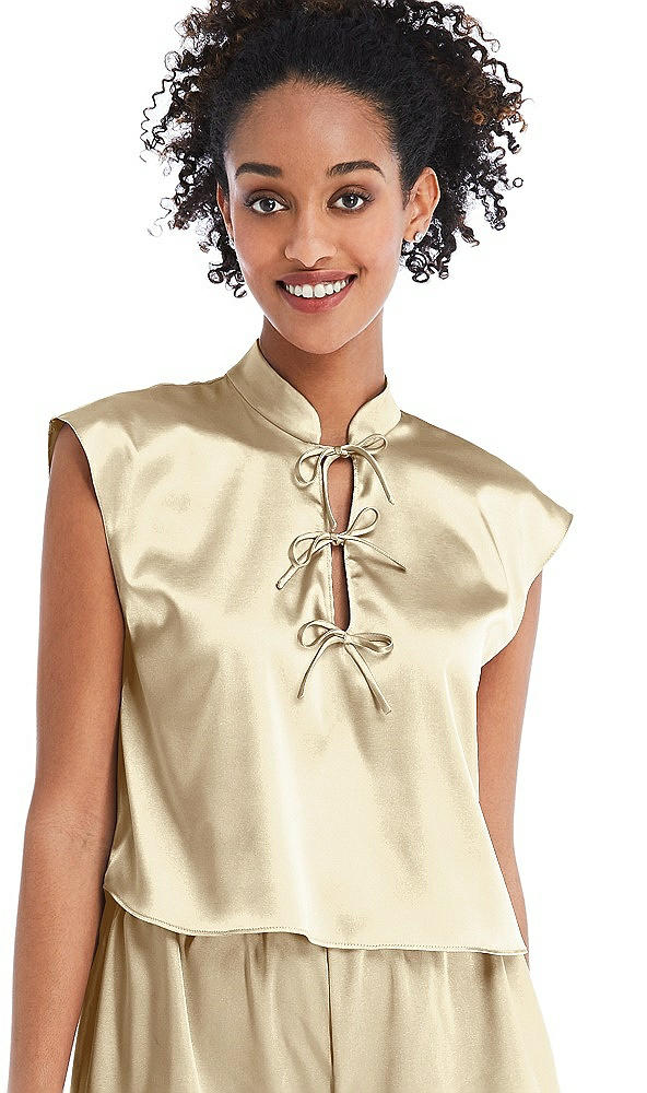 Satin Stand Collar Tie-Front Pullover Top - Remi in Banana