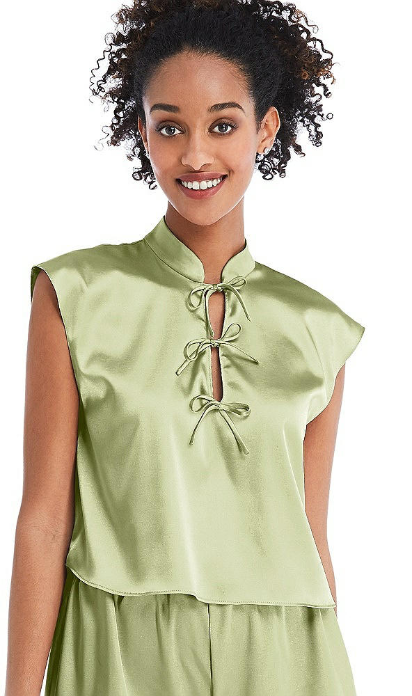 Satin Stand Collar Tie-Front Pullover Top - Remi in Mint