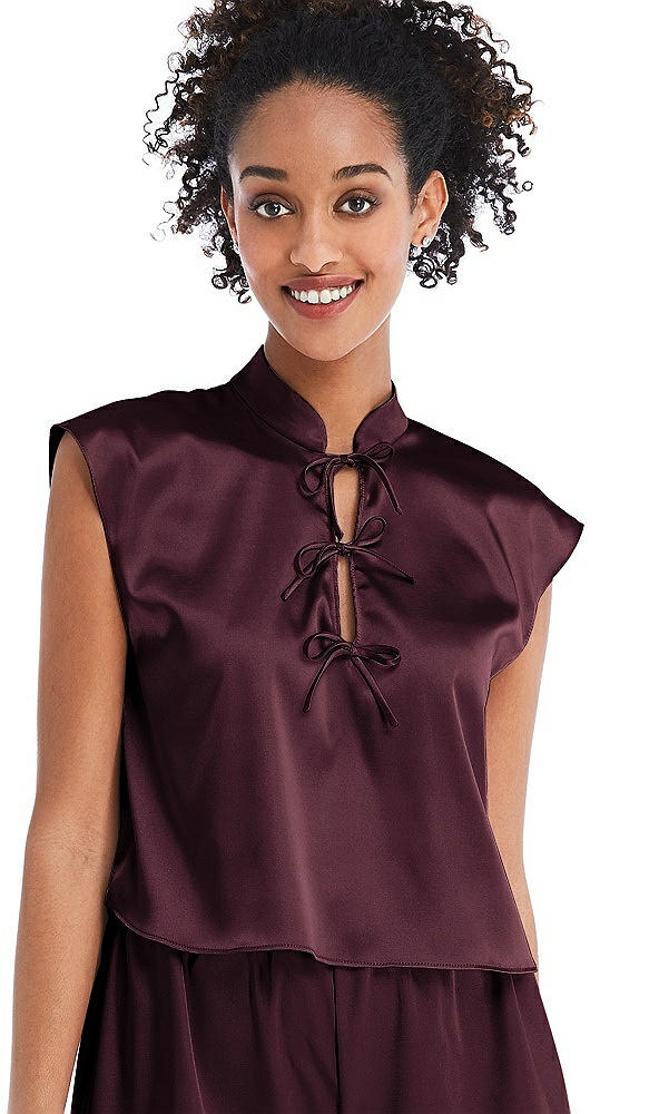 Satin Stand Collar Tie-Front Pullover Top - Remi in Bordeaux