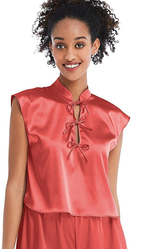 Satin Stand Collar Tie-Front Pullover Top - Remi in Perfect Coral