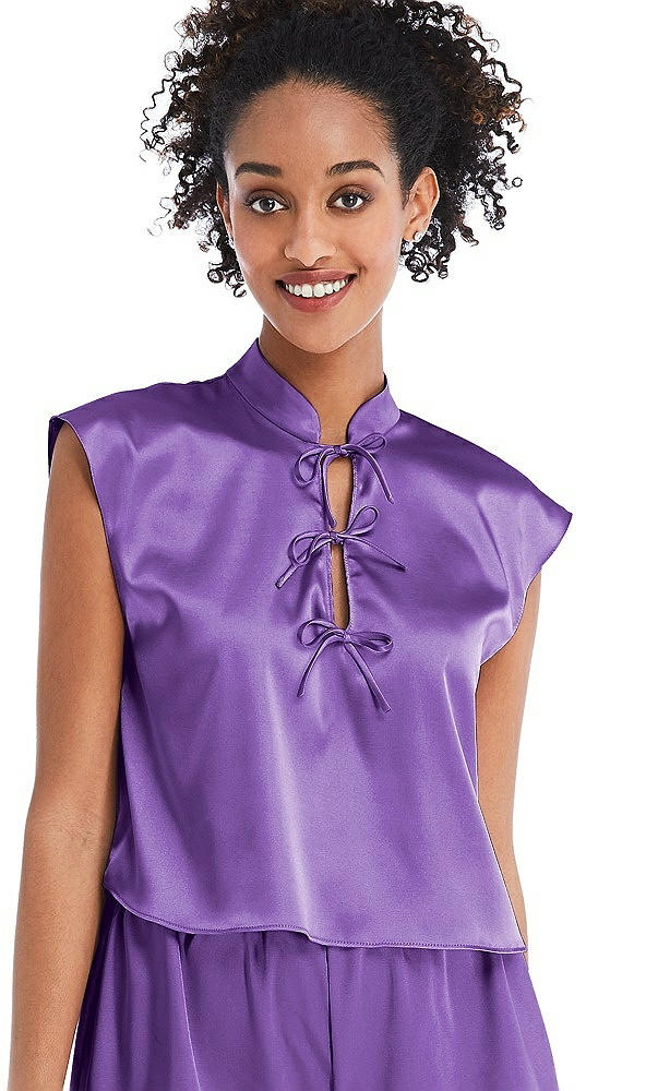 Satin Stand Collar Tie-Front Pullover Top - Remi in Pansy