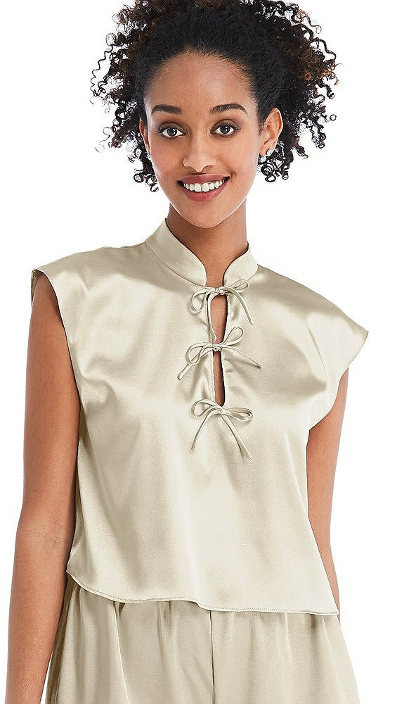Satin Stand Collar Tie-Front Pullover Top - Remi in Champagne