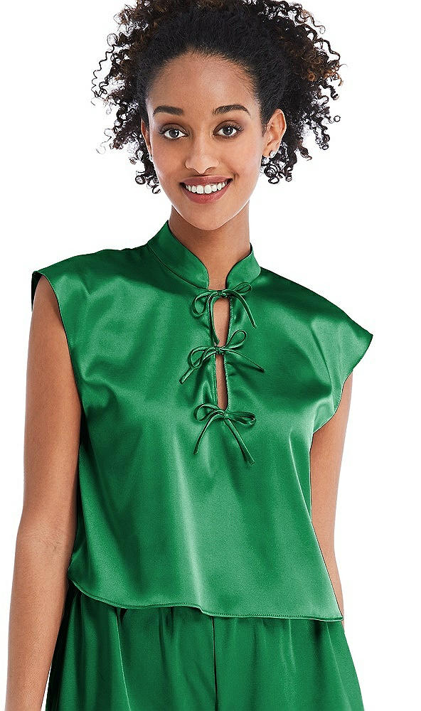 Satin Stand Collar Tie-Front Pullover Top - Remi in Shamrock