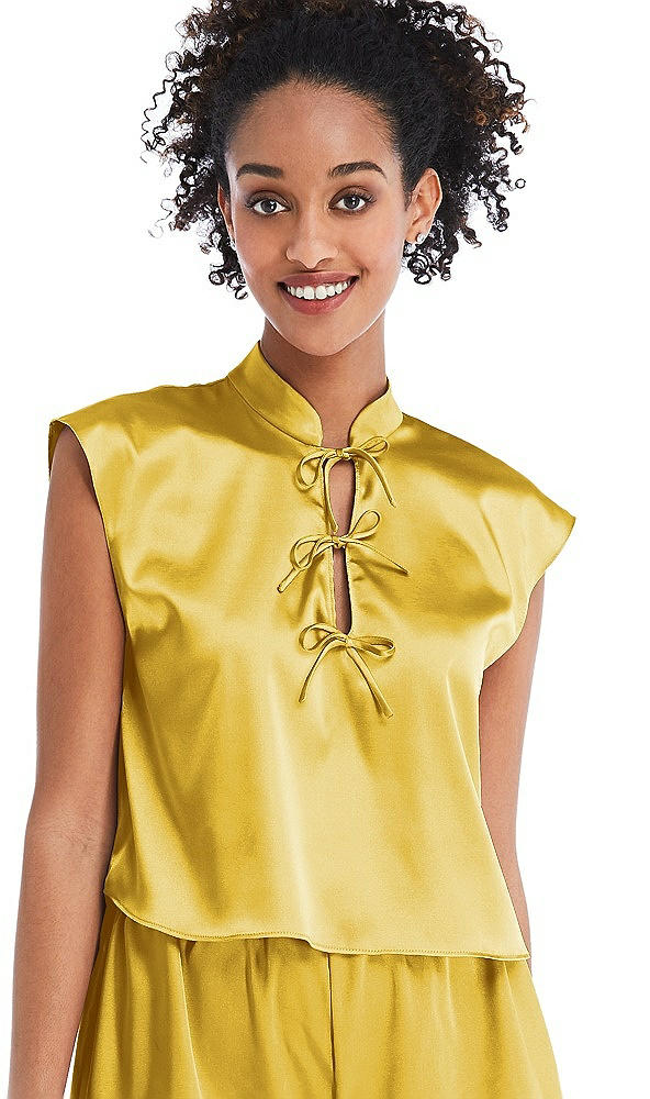 Satin Stand Collar Tie-Front Pullover Top - Remi in Marigold