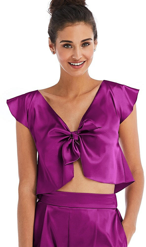 Satin Tie-Front Lounge Crop Top - Frankie in Persian Plum
