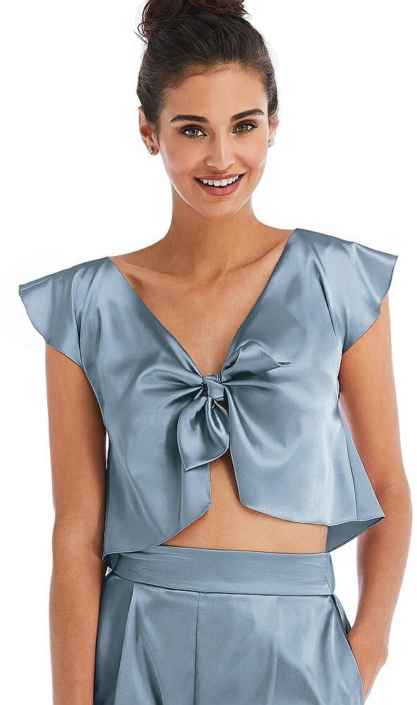 Satin Tie-Front Lounge Crop Top - Frankie in Slate