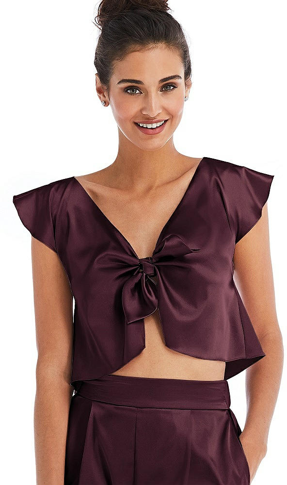 Satin Tie-Front Lounge Crop Top - Frankie in Bordeaux