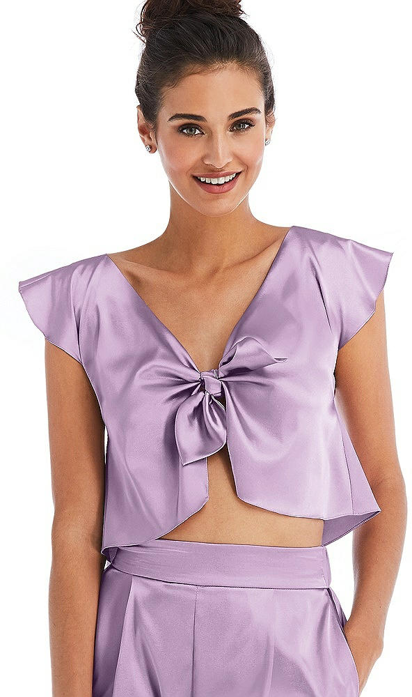 Satin Tie-Front Lounge Crop Top - Frankie in Wood Violet
