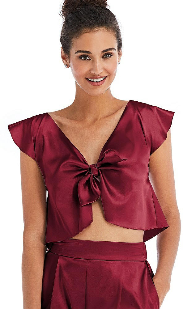 Satin Tie-Front Lounge Crop Top - Frankie in Burgundy