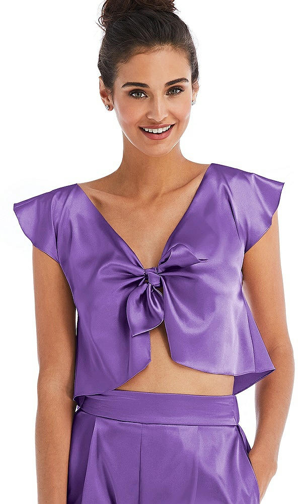 Satin Tie-Front Lounge Crop Top - Frankie in Pansy