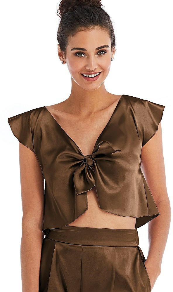 Satin Tie-Front Lounge Crop Top - Frankie in Latte