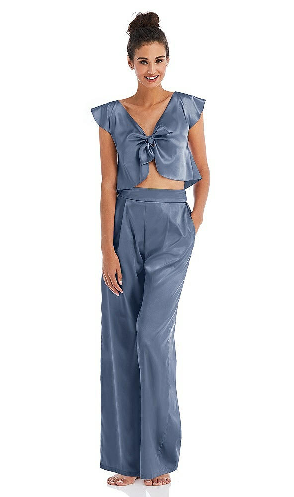 Satin Wide-Leg Lounge Pants with Pockets - Ray in Larkspur Blue