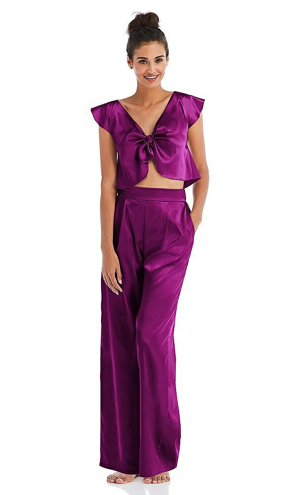 Satin Wide-Leg Lounge Pants with Pockets - Ray in Persian Plum