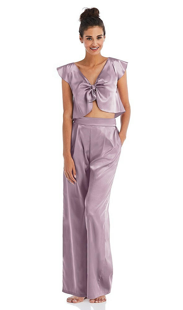 Satin Wide-Leg Lounge Pants with Pockets - Ray in Suede Rose