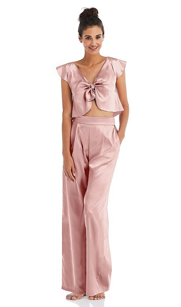 Satin Wide-Leg Lounge Pants with Pockets - Ray in Rose