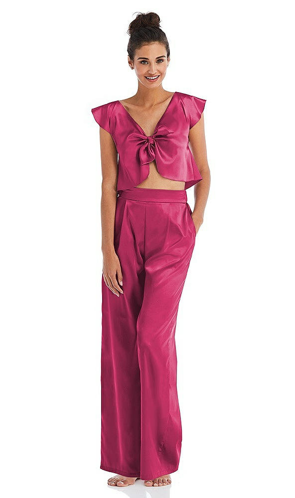 Satin Wide-Leg Lounge Pants with Pockets - Ray in Shocking