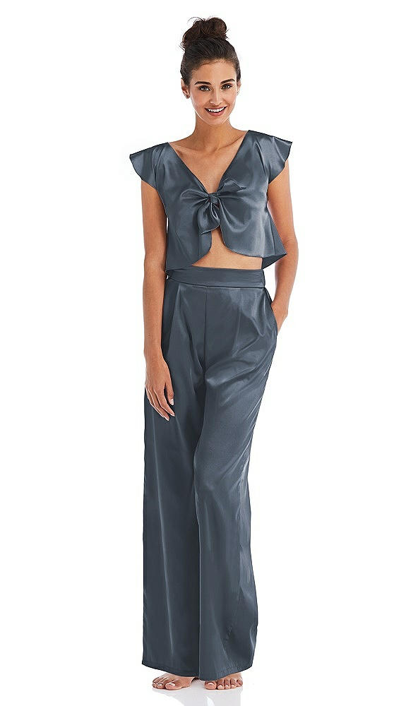 Satin Wide-Leg Lounge Pants with Pockets - Ray in Silverstone