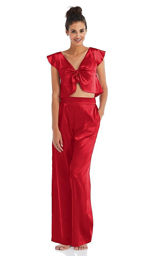 Satin Wide-Leg Lounge Pants with Pockets - Ray in Parisian Red
