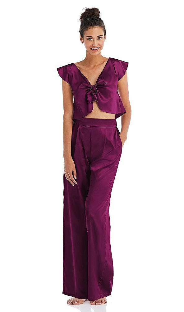 Satin Wide-Leg Lounge Pants with Pockets - Ray in Merlot