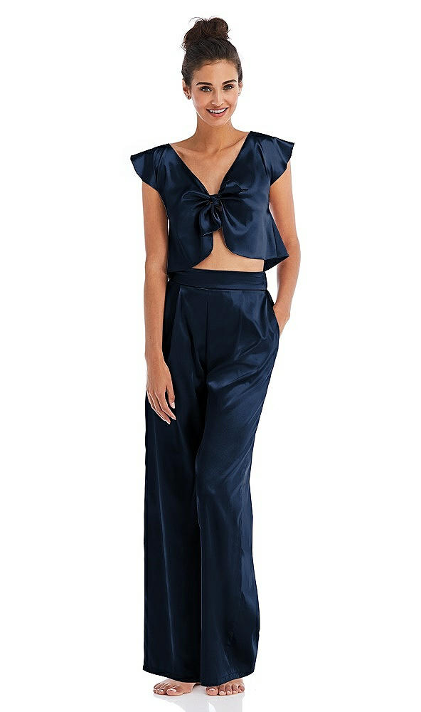 Satin Wide-Leg Lounge Pants with Pockets - Ray in Midnight Navy