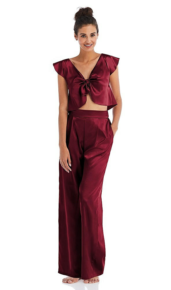 Satin Wide-Leg Lounge Pants with Pockets - Ray in Burgundy