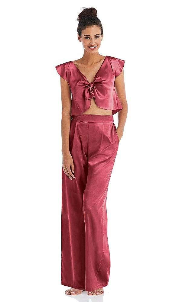 Satin Wide-Leg Lounge Pants with Pockets - Ray in Nectar