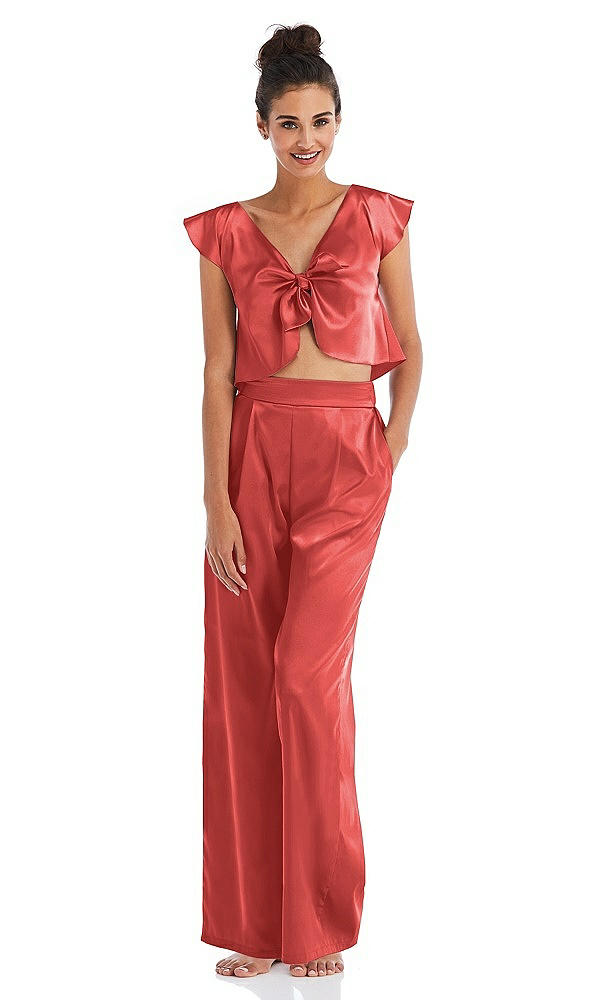 Satin Wide-Leg Lounge Pants with Pockets - Ray in Perfect Coral