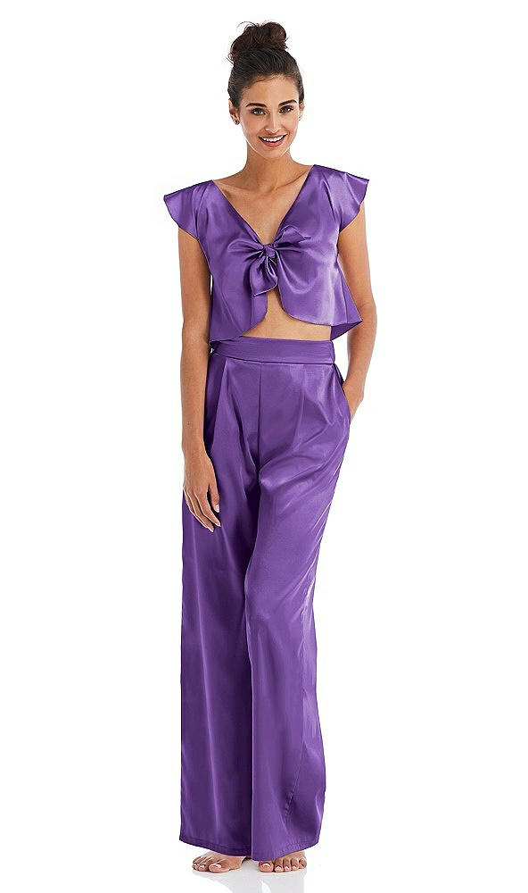Satin Wide-Leg Lounge Pants with Pockets - Ray in Pansy