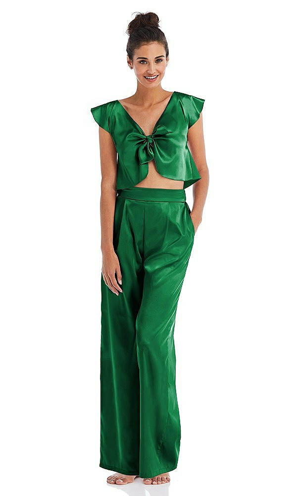 Satin Wide-Leg Lounge Pants with Pockets - Ray in Shamrock