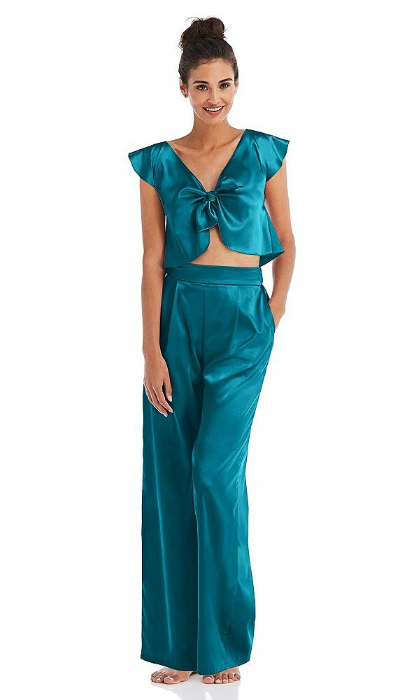 Satin Wide-Leg Lounge Pants with Pockets - Ray in Oasis