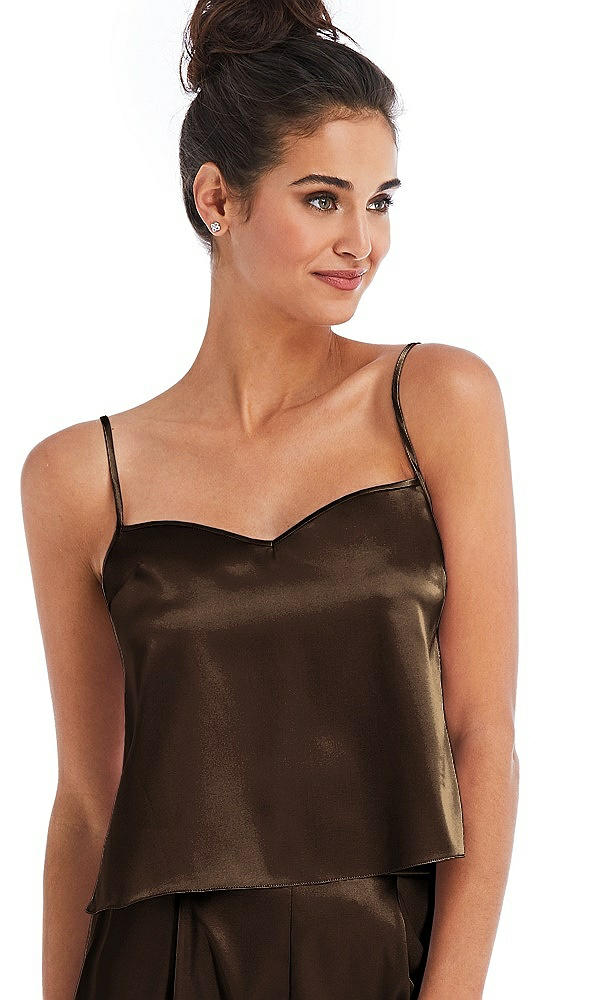 Split Back Satin Cami Top with Slim Straps in Espresso