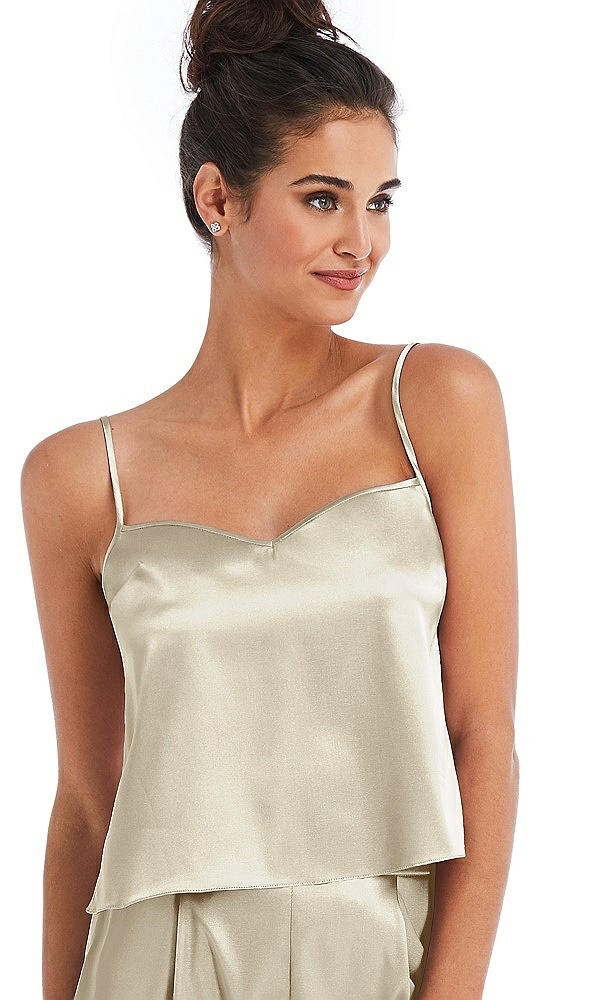 Split Back Satin Cami Top with Slim Straps in Champagne