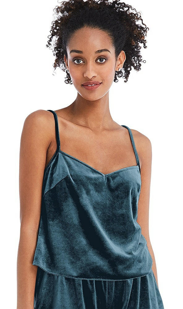 Split Back Slim Strap Velvet Cami - Sari in Dutch Blue