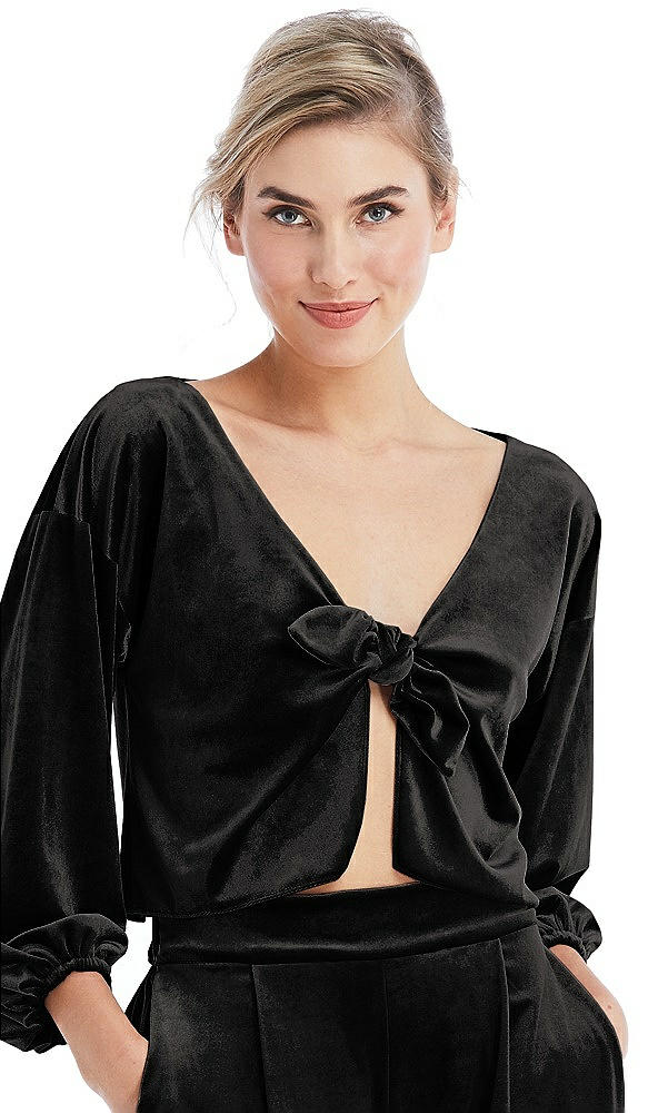Tie-Front Velvet Puff Sleeve Top - Poppy in Black