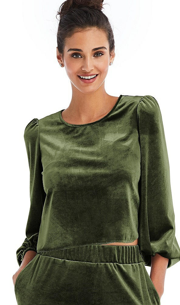 Velvet Pullover Puff Sleeve Top - Rue in Olive Green