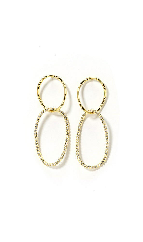 These linked gold hoops earrings rock a sleek, modern vibe with a classic twist. With two oval gold hoops linked together and hanging from a sterling silver post back, the bottom larger oval hoop is pavé studded with sparkly cubic zirconia that catch the light just right. Whether you're dressing up for a night out or adding a hint of glam to your day look, these pave-link gold hoops are the perfect plus-one.