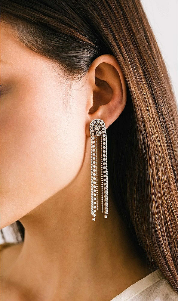 These gorgeous fringe crystal earrings are giving us boho-chic vibes. They feature a plush design with a double crystal stud at the top, giving way to a waterfall of glimmering strands that dance just above your shoulders. These fringe earrings are dripping in glam with creamy crystals and warm copper tones, an almost rose-gold hue with a vintage yet super trendy feel. Rock these with a bold lip, throw on your fave heels, and you're not just walking; you're making an entrance.