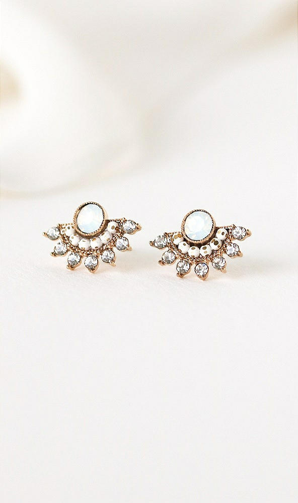 These stunning inverted fan earrings have a fab vintage vibe, perfect for adding a bit of sparkle to any outfit. They feature a central opalescent stone that gives off a dreamy feel, surrounded by a half-halo of smaller shimmering crystals and wrapped in a warm gold-tone finish. These glitzy vintage-style stud earrings are your new go-to for an effortlessly chic look— day or night!