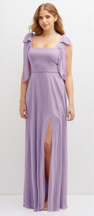 Bow Shoulder Square Neck Chiffon Maxi Dress in pale purple