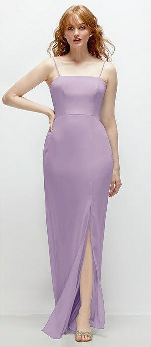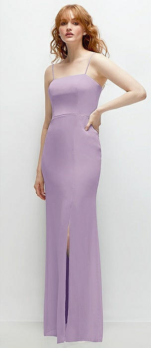 Spaghetti Strap Draped Skirt Gown with Front Slit in pale purple